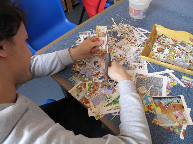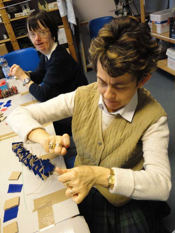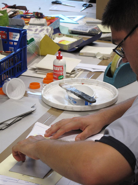 Da anni sperimentiamo l'uso della carta nel laboratorio per ragazzi disabili, e abbiamo messo a punto una serie di scomposizioni dei lavori in sequenze semplici, per adattare le fasi operative alle diverse capacità di ciascuno.